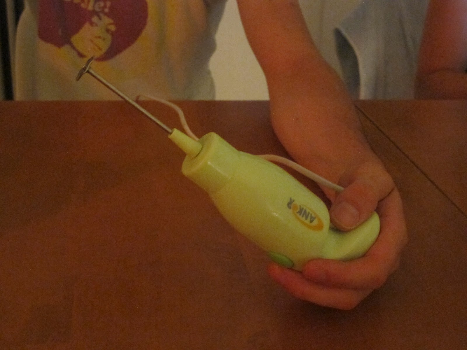 Teraz konieczne jest jakieś kuchenne, mechaniczne urządzenie z szybko obracającą się końcówką – jak na przykład blender. Na zdjęciu widać typową „frappedierę”. |