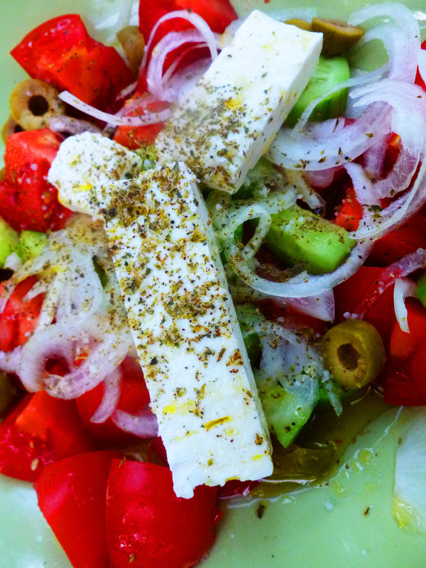 Od pierwszego postu minął już dobry rok. A ja uświadomiłam sobie, że na blogu  brak jest najważniejszego! Czyli  przepisu: jak zrobić prawdziwą grecką sałatkę?