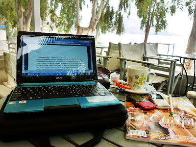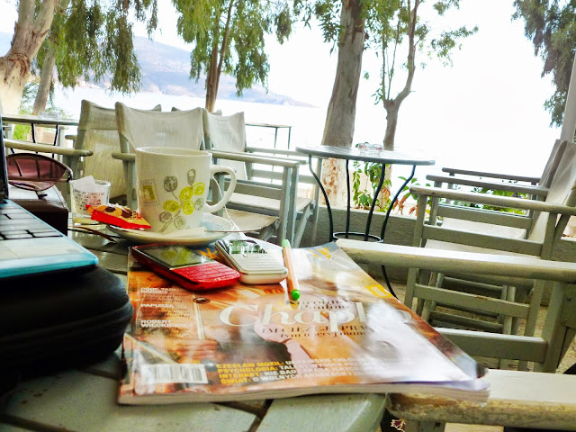 Najlepszym dla mnie rozwiązaniem byłaby przyjazna czytelnia gdzieś w okolicy, albo jeszcze lepiej coś w rodzaju Starbucksa. Niestety, ten ostatni najbliżej jest w Atenach… Pozostaje więc kilka okolicznych kawiarenek. To właśnie do jednej z nich by popracować przychodzę już w poniedziałek z rana, żeby również miło zacząć cały tydzień. Nie ma nic przyjemniejszego niż dobra kawa o poranku!
