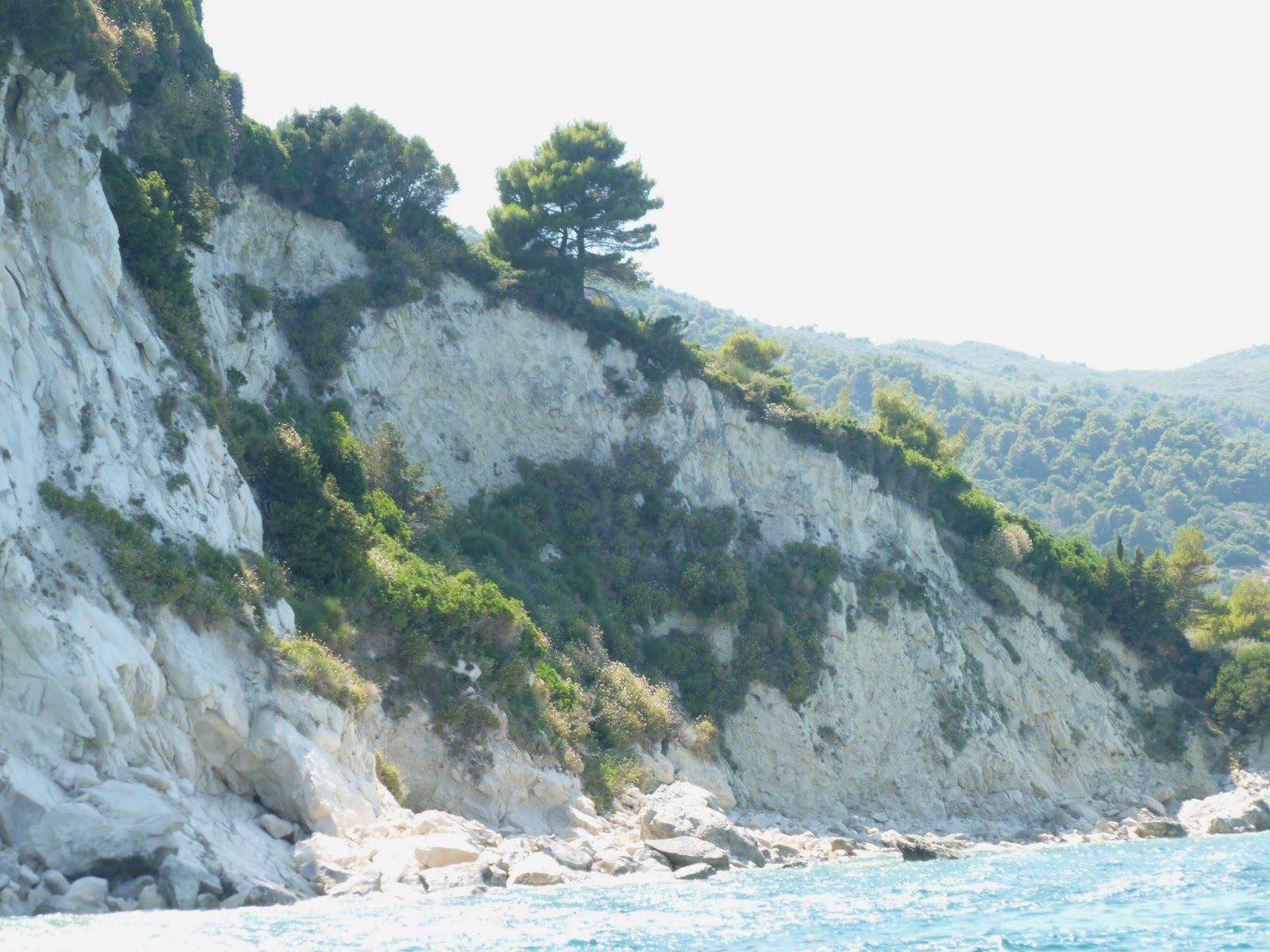 Trasa rejsu przebiega tuż obok wysokich, poszarpanych urwisk skalnych. Przy dobrej pogodzie woda mieni się w słońcu, prezentując wszystkie istniejące odcienie błękitu. Skały miejscami tworzą łuki, a na granicy z morzem wyrastają mniejsze bądź większe jaskinie. Niektóre z nich to doskonałe miejsca do nurkowania. To właśnie na tym terenie, nieopodal Jeziora Keri, znajduje się szkoła nurkowania. Owe jezioro jest dla wyspy istotnym miejscem, ponieważ właśnie tam znajdują się znane od starożytności źródła smoły.