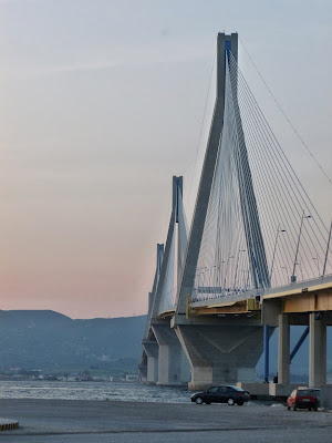 Współczesna technika czy też budownictwo, nigdy specjalnie nie leżały w kręgu moich zainteresowań. Trudno jednak nie zachwycić się wielkimi osiągnięciami cywilizacji XXI wieku, których doskonałym przykładem jest Rion – Antirion. Widok tego gigantycznego mostu, wpasowanego w monumentalny krajobraz morza i gór, robi ogromne wrażenie. Sam most widziany z daleka, przypomina jedną z rzeźb sztuki współczesnej i jest przykładem na to, że i budowla może być po prostu piękna.